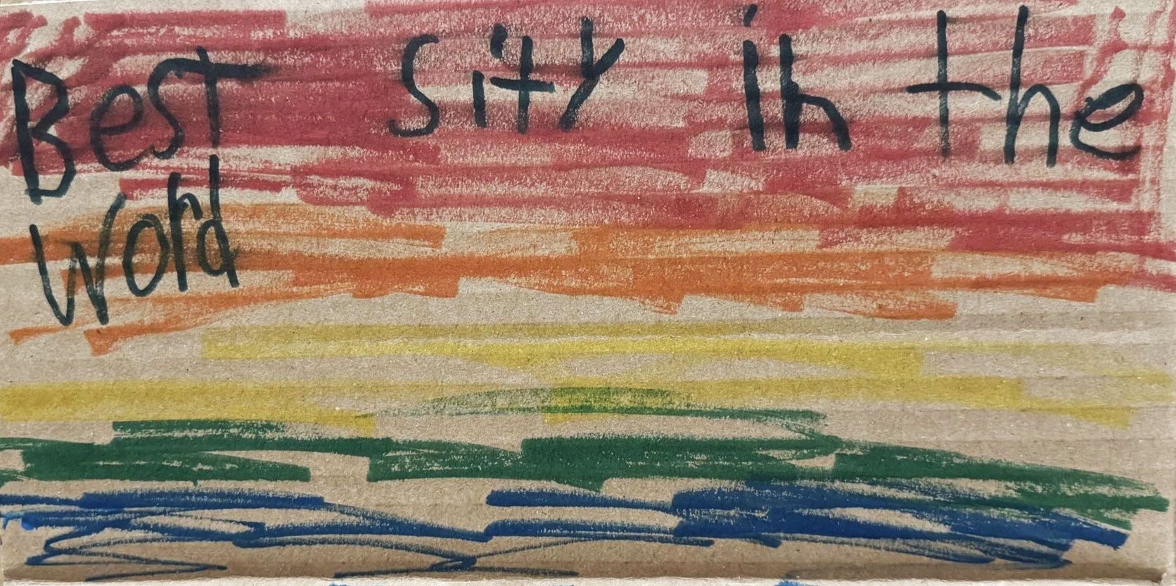 This sign was written by children building a cardboard city at the children’s Museum in Madison, Wisconsin.