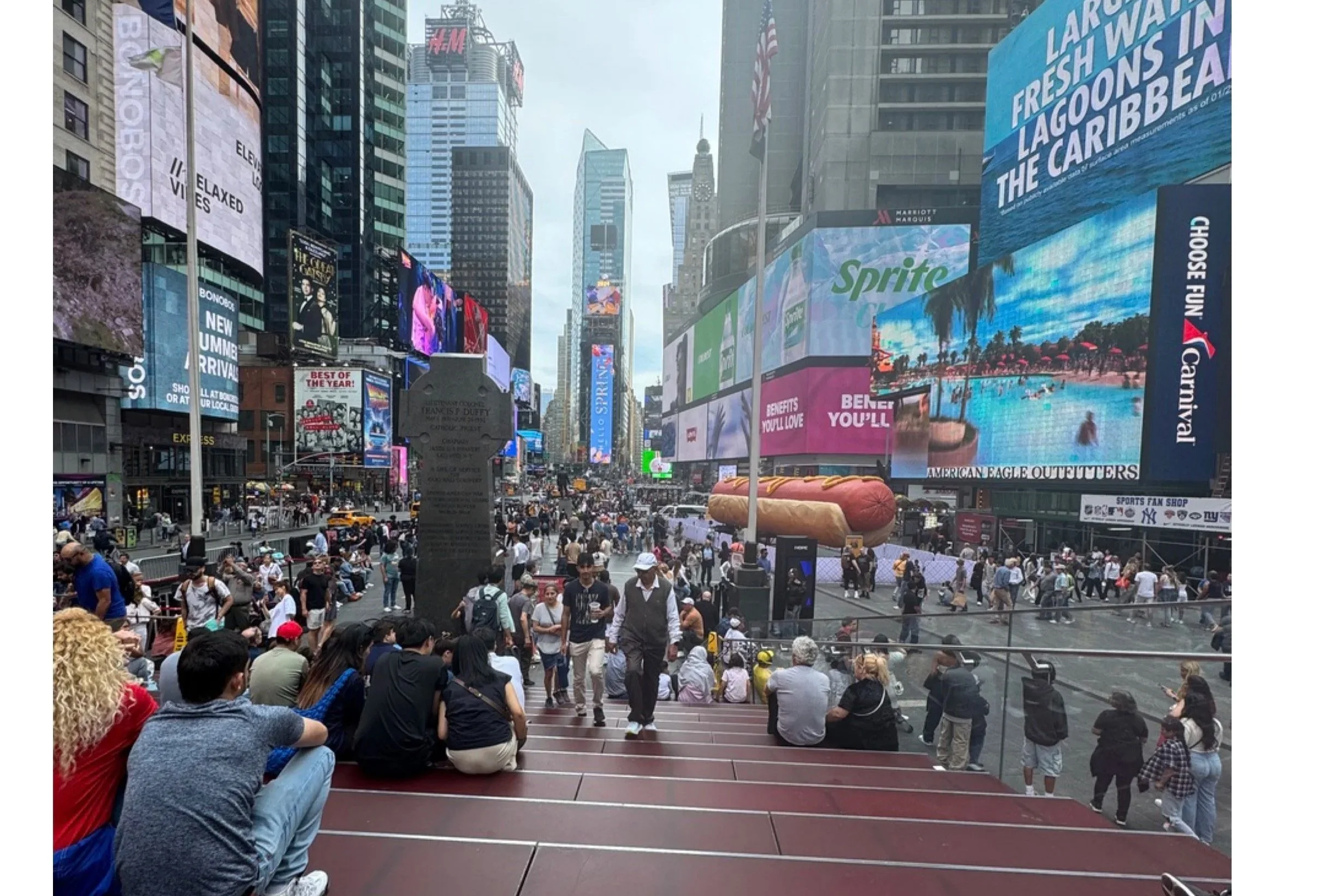 Time Square includes bleachers to help people watch people. There are no trees.